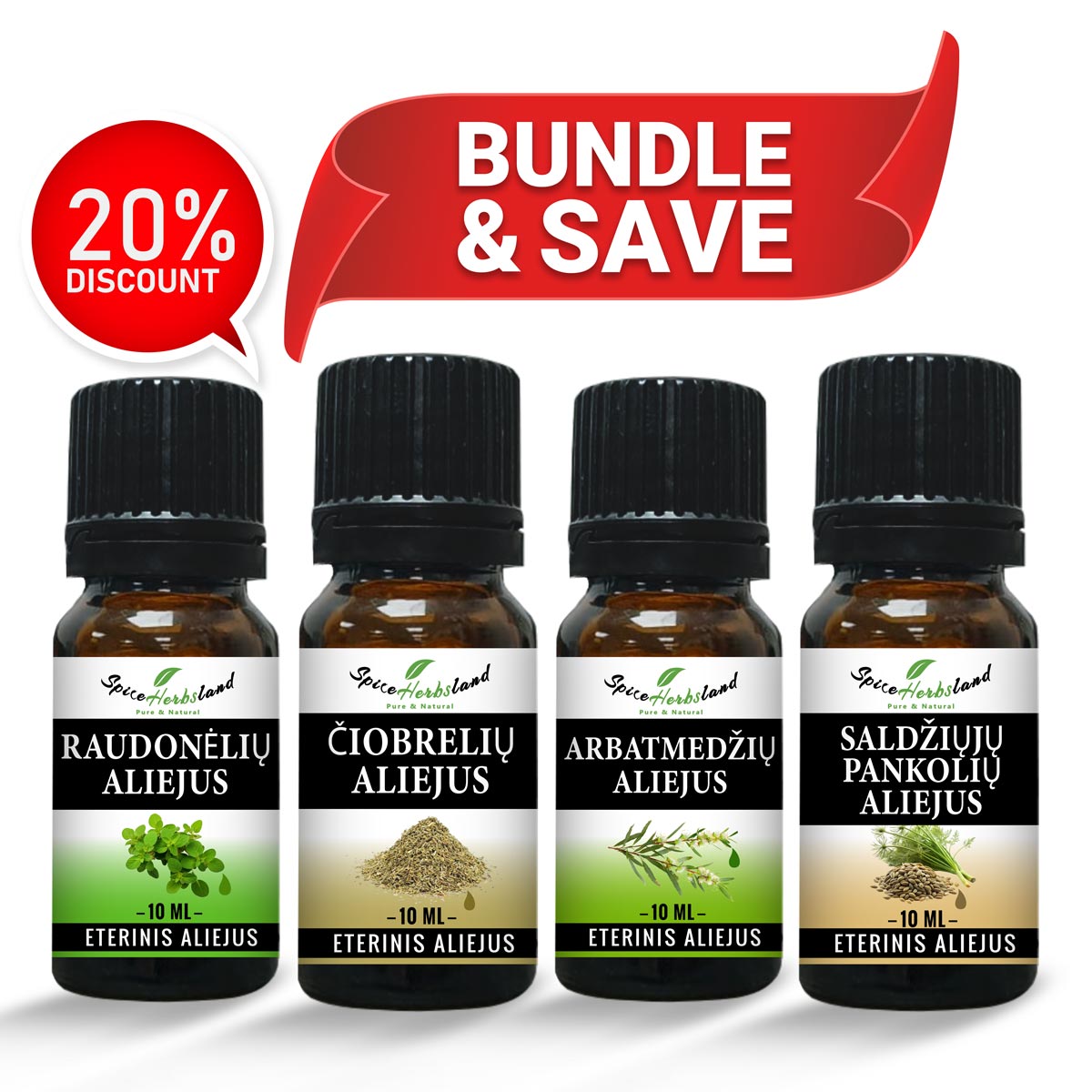 - Vienos kilmės prieskoniai, gryni eteriniai aliejai ir šalto spaudimo aliejai